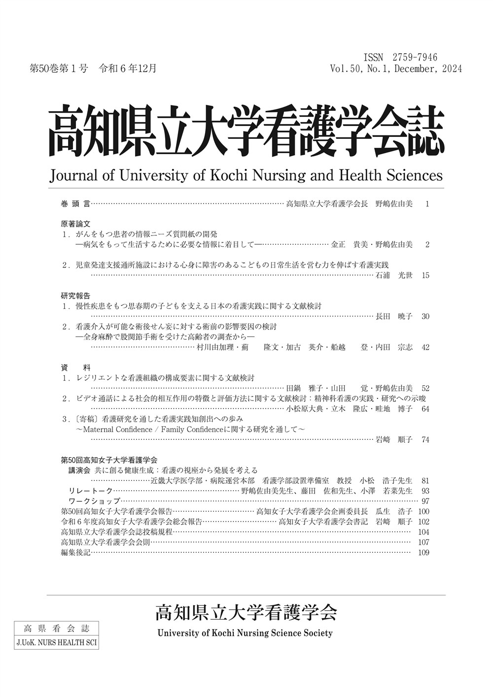 高知県立大学看護学会誌 第50巻第1号を発刊いたしました。